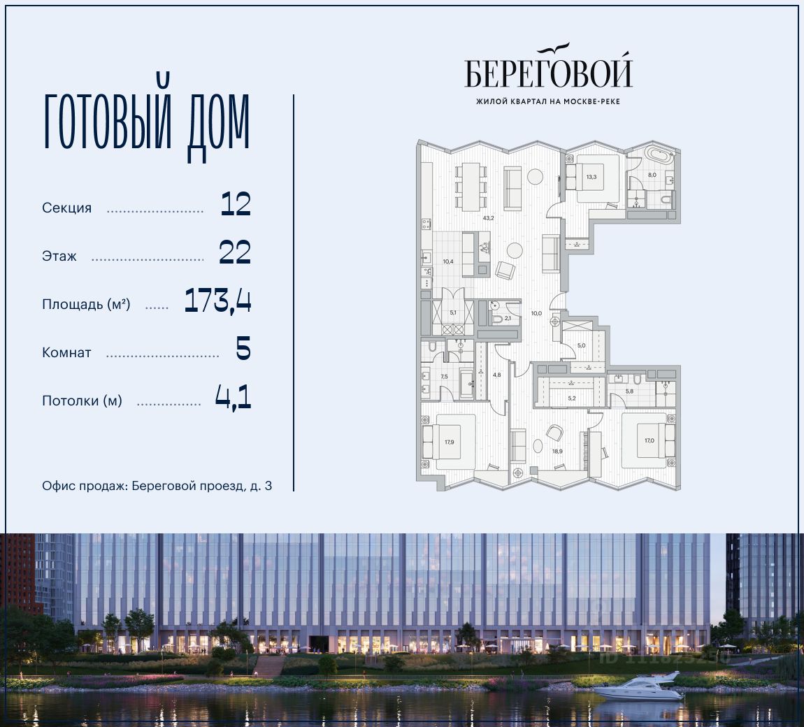 Береговой — квартал-курорт в центре столицы. Готовый дом на первой линии Москвы-реки. Пешеходная набережная начинается прямо от дома — никаких дорог между вами и рекой. Уникальное сочетание природы парка Фили и ритма Сити.