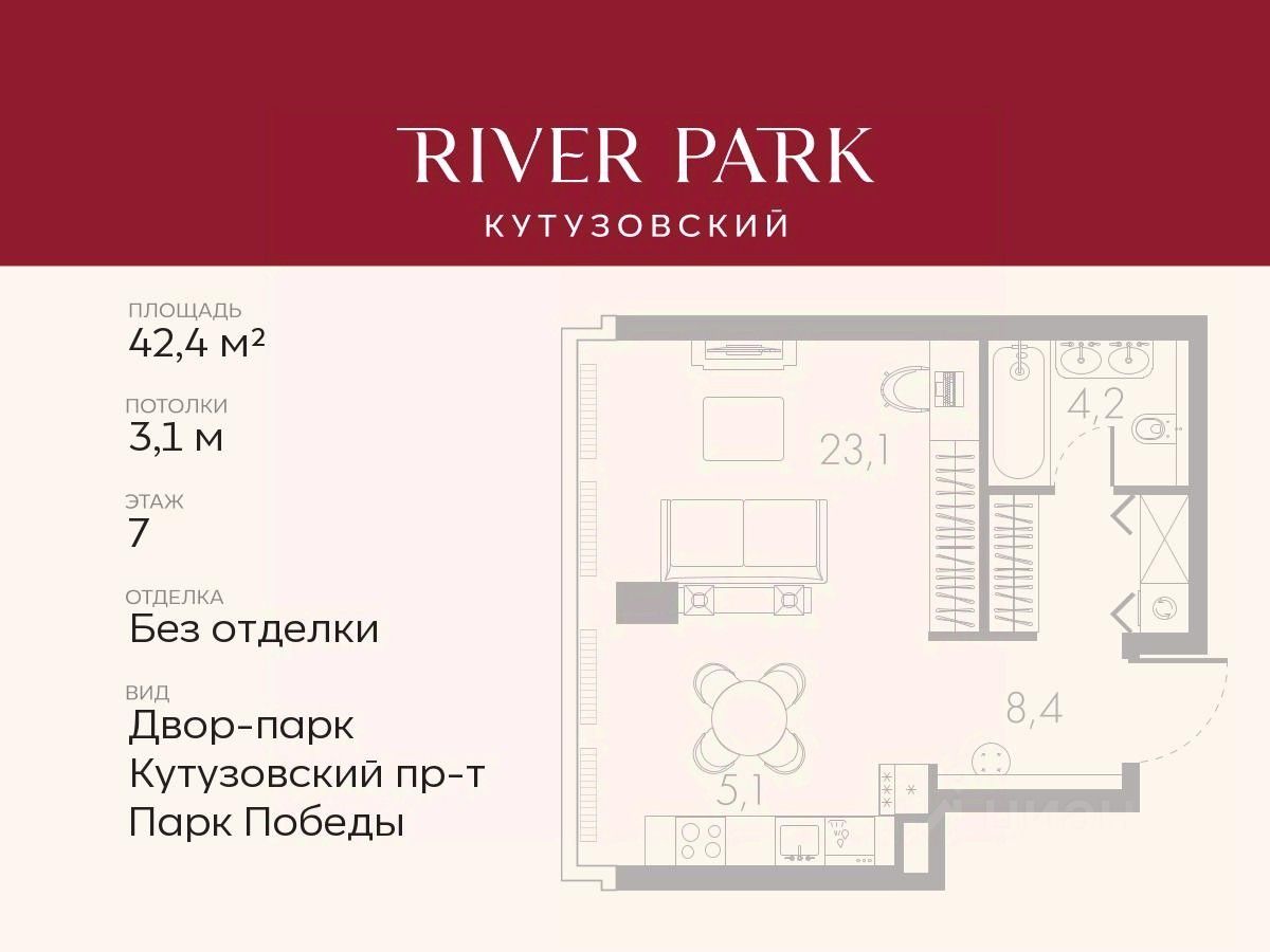 Продается студия площадью 42.4 кв.м. на 7-м этаже в жилом комплексе премиум-класса River Park Кутузовский в Башне Amber Tower