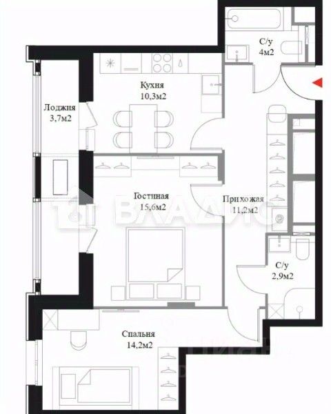 Общая площадь квартиры составляет 64,3 кв. м, из которых 30 кв. м — жилая площадь. Кухня площадью 10,8 кв. м идеально подходит для семейных ужинов и дружеских посиделок. Высота потолков — 2,9 м. Квартира без отделки, что даёт возможность воплотить все свои дизайнерские идеи и создать уникальный интерьер.
