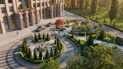 - Внутренние дворы с зонами для отдыха и детскими площадками, а также паркинги для автомобилей.