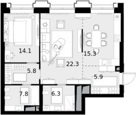 Двухкомнатная квартира площадью 77,50 кв. м. на 16 этаже нового дома премиум-класса Высотка на Жукова