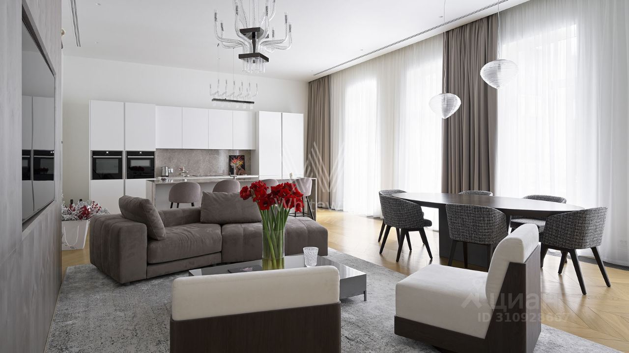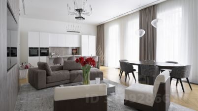кухня-гостиная 60 м² с выходом на террасу с подогревом, ориентированную во внутренний