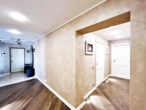 В квартире выполнена дизайнерская отделка из качественных материалов: полы в квартире - массив ясеня, пол в прихожей - мрамор, стальные немецкие радиаторы Zehnder, утепленные лоджии со вторым остеклением Kaleva, приточно-вытяжная вентиляция по всей квартире. Мебель и техника известных производителей: встроенные немецкие конвекторы с вентилятором Kampmann, итальянская кухня Scavolini, столешница из кварцевого агломерата, встроенная техника Kuppersbusch (паровой шкаф, совмещенный с духовкой, кофемашина, варочная поверхность), холодильник Liebherr side by side с винным шкафом. В ванной немецкая сантехника Villeroy&boch и смесители hansgrohe axor. В душевой тропический душ Hansgrohe с управлением Gessi, сантехника Duravit, раковина со столешницей из кварцевого агломерата. Встроенные шкафы Mr. Doors.