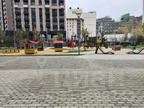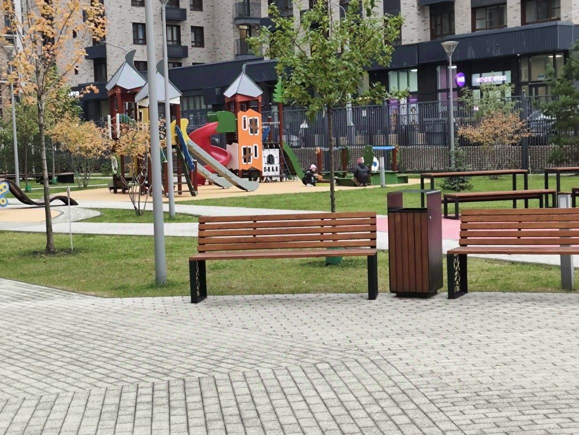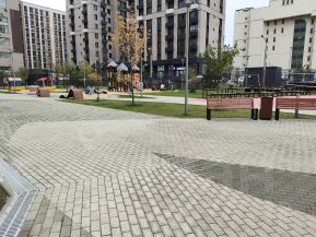 Двор без машин, внутри благоустройство с детскими и спортивными площадками, зонами отдыха, газонами.
