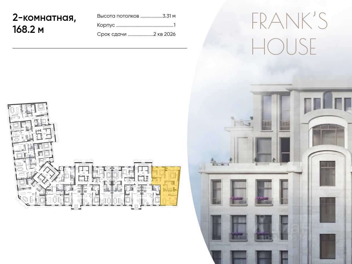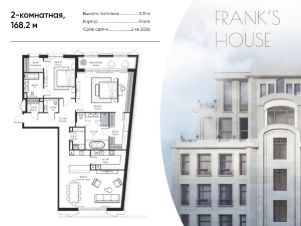 Продается двухкомнатная квартира в ЖК "Дом Франка" по адресу Москва, ЦАО, Мещанский, Большой Кисельный переулок, д. 11, корп. 1 Общая площадь квартиры - 168,20 кв.м., этаж 2. Стоимость квартиры - 266 072 163 р.