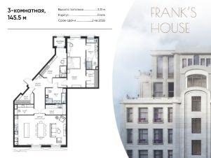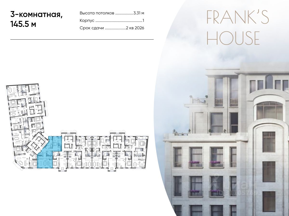 Продается трехкомнатная квартира в ЖК "Дом Франка" по адресу Москва, ЦАО, Мещанский, Большой Кисельный переулок, д. 11, корп. 1 Общая площадь квартиры - 145,50 кв.м., этаж 2. Стоимость квартиры - 237 003 759 р.