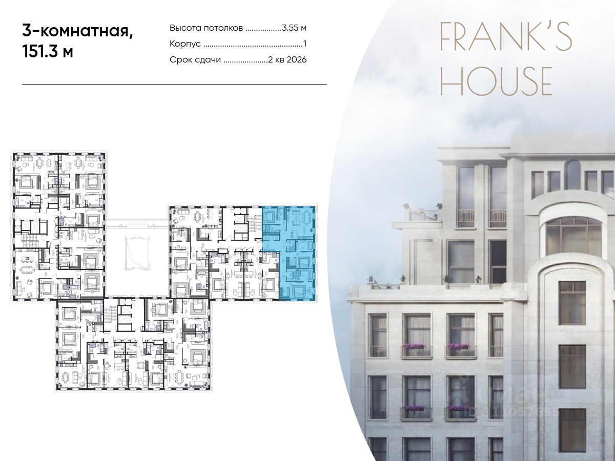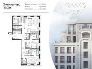 Продается трехкомнатная квартира в ЖК "Дом Франка" по адресу Москва, ЦАО, Мещанский, Большой Кисельный переулок, д. 11, корп. 3 Общая площадь квартиры - 151,30 кв.м., этаж 2. Стоимость квартиры - 266 015 625 р.