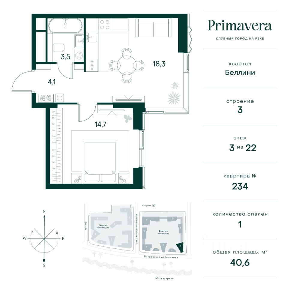 Клубный город на реке Primavera — это респектабельный проект премиум-класса на первой береговой линии Москвы-реки в экологически безупречном районе — Покровское-Стрешнево. Под панорамными окнами квартир расположился собственный экопарк, площадью 12 гектаров с сетью прогулочных дорожек, оборудованный детскими и спортивными площадками, а за ним набережная с собственным пляжем и зонами отдыха. Клубный город на реке Primavera предлагает впечатляющий выбор планировок для любого жизненного сценария: от просторных однокомнатных квартир до пентхаусов и квартир с видовыми террасами или патио. Выбирайте из 120 вариантов эргономичных планировок стандартного и евроформата. В проекте доступны квартиры площадью от 40 до 209 м², в каждой из которых открываются непревзойденные виды на реку, а угол обзора составляет 270 градусов. Из дизайнерских лобби открывается панорамный обзор на зеленый благоустроенный двор. Статусное мебелирование, потолки высотой 6 м и комфортная лаунж-зона отсылают к стилистике высококлассных пятизвездочных отелей. В Primavera есть все, что может предложить мегаполис, здесь все сосредоточено вокруг вас и настроено на ваши желания: - Всестороннее детское развитие в паре шагов от дома: 4 школы, 8 детских садов, развивающие центры с кружками и секциями. - Комфорт мегаполиса на расстоянии приятной прогулки: супермаркеты, кафе, рестораны с верандами на крыше, салоны красоты, аптеки, компании сферы услуг, многофункциональный центр для шоппинга и развлечений. - Умный дом: автоматизированное бесконтактное управление основными системами доступа, инфраструктуры и безопасности через мобильное приложение и специальные метки. Клубный город на реке Primavera выгодно отличается близостью к природе, совмещенной с насыщенной инфраструктурой.