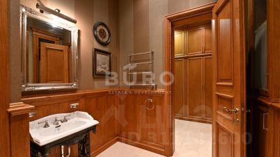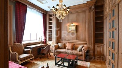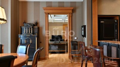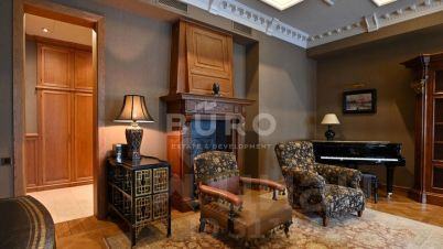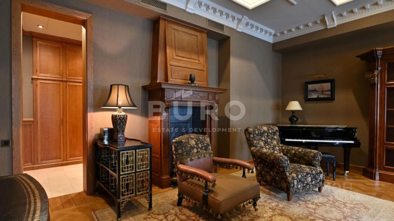 Выполнена дизайнерская отделка "под ключ" из премиальных материалов в стиле американской классики. Шикарный интерьер укомплектован антикварной мебелью и предметами искусства. Обилие натурального дерева во внутреннем убранстве создаёт атмосферу роскоши. Квартира состоит из кухни-столовой, гостиной с декоративным камином, мастер-спальни со своим санузлом и гардеробной, спальни, кабинета и caнузла.