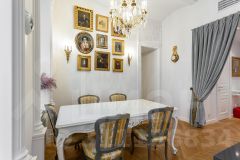 Общая площадь - 105 м2, спланированы: большая гостиная, кухня-столовая с островом, спальня с гардеробной и ванной комнатой, гостевой с/у. Вся мебель, текстиль, дизайнерские предметы интерьера привезены из Франции: люстра 19 века, зеркало 18 века, бра. Сантехника - Villeroy & Boch, техника - Miele. Восемь окон наполняют жилое пространство естественным светом, а высокие потолки 3,2 метра добавляют простора и воздушности.