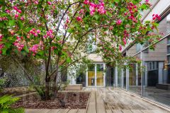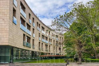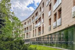 Дом расположен напротив зелёного сквера, в глубине тихого квартала Остоженки, рядом с парками, галереями и набережной Москвы-реки.