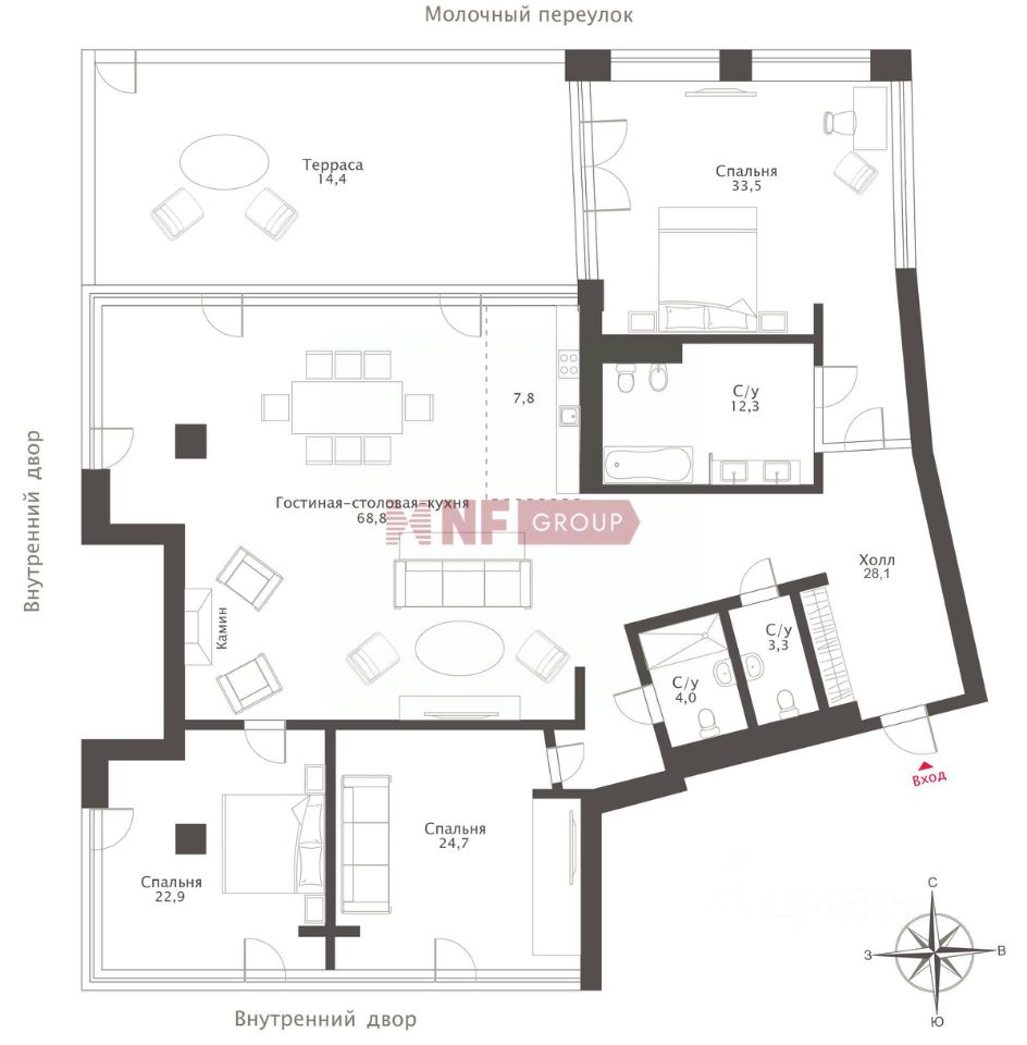 Лот: 86428. Эксклюзив NF GROUP. Впервые в продаже эксклюзивная квартира без отделки в клубном доме в Молочном переулке — знаковом проекте Золотой Мили, спроектированном архитектурным бюро "Меганом".