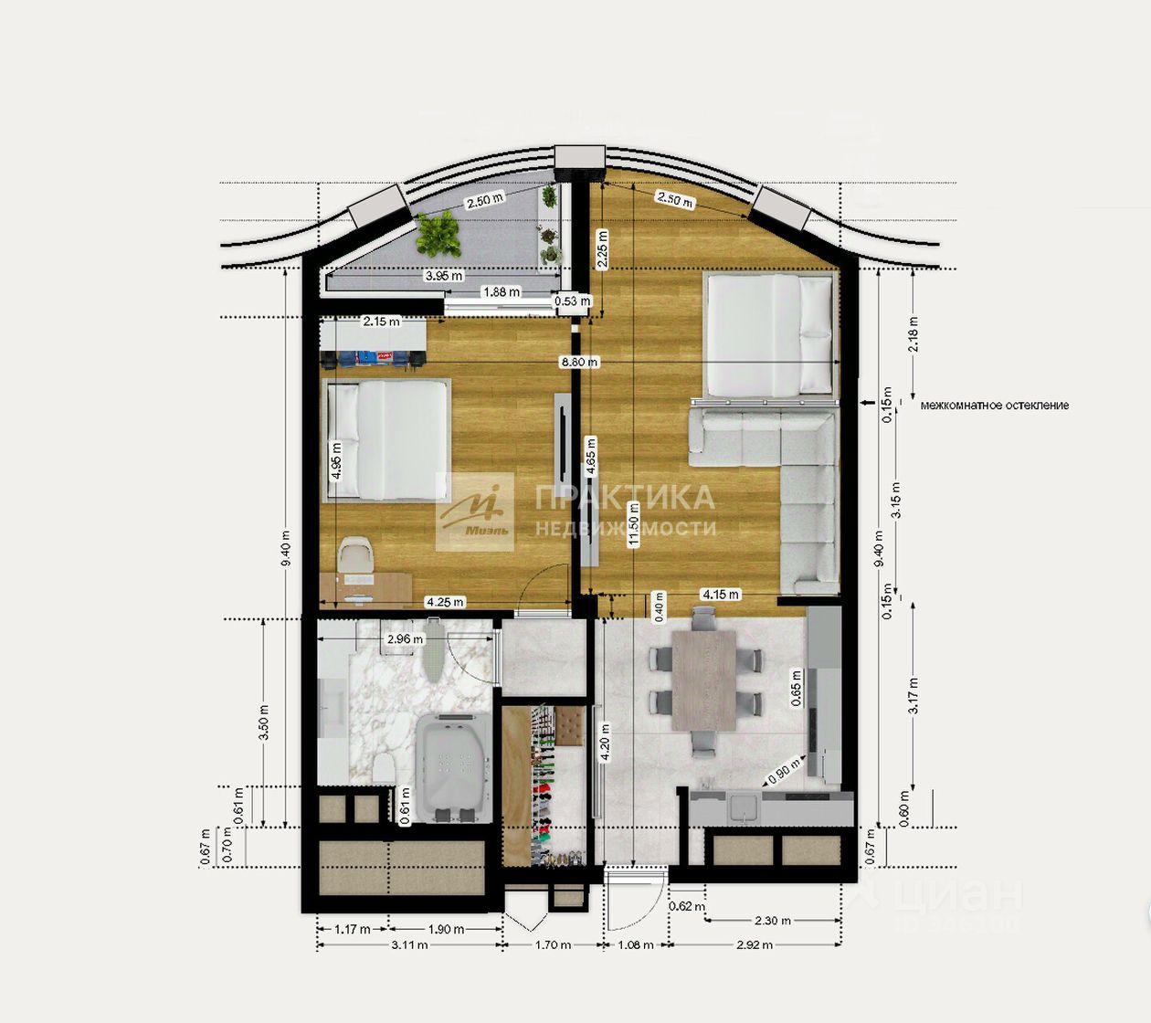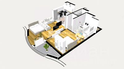 • Евродвушка, квартира свободной планировки: кухню-гостиную можно поделить на три части: вторую спальню, досуг и рабочую. Поэтажный план из ДДУ.