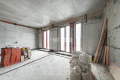 Площадь и количество окон позволяют спланировать просторную гостиную с зоной кухни и столовой, 3-4 спальни, гостевой санузел, постирочную, пространства для хранения.