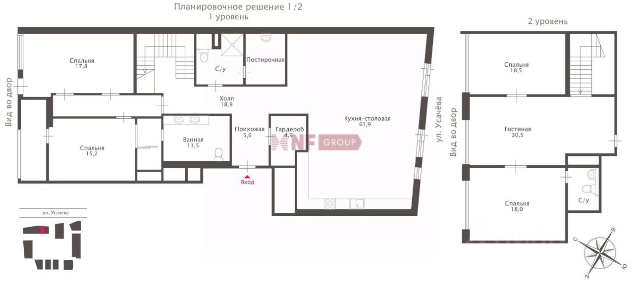 Окна выходят на 2 стороны: в благоустроенный двор и на улицу Усачева.