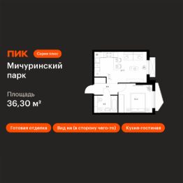 Продаётся 1-комн. квартира площадью 36,3 кв.м на 24 этаже 32 этажного дома (Корпус 4.5, Секция 2) проекта ПИК Мичуринский парк. Светлый просторный подъезд на уровне земли, функциональная планировка, большие окна, c отделкой.
