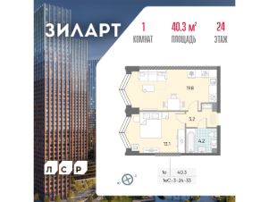 Продаётся 1-комнатная квартира в доме ЗИЛАРТ СПАРК общей площадью 40.3 кв. метров на 24 этаже.