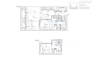 Планировка: просторная гостиная, кухня со столовой зоной, две спальни и два санузла, удобная прихожая с гардеробом, выход на собственную кровлю, где можно обустроить прекрасное патио для отдыха на свежем воздухе.