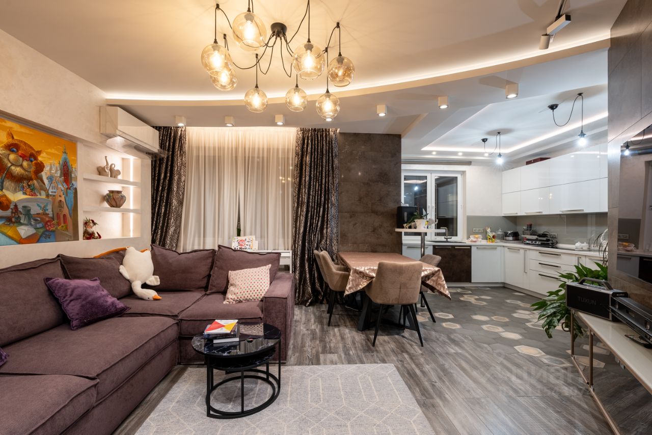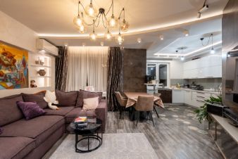 В квартире выполнен авторский дизайнерский ремонт. В отделке использованы только современные, высококачественные экологичные материалы. Квартира укомплектована всей необходимой встроенной мебелью и техникой ведущих производителей для комфортного проживания(много пространства для хранения вещей).