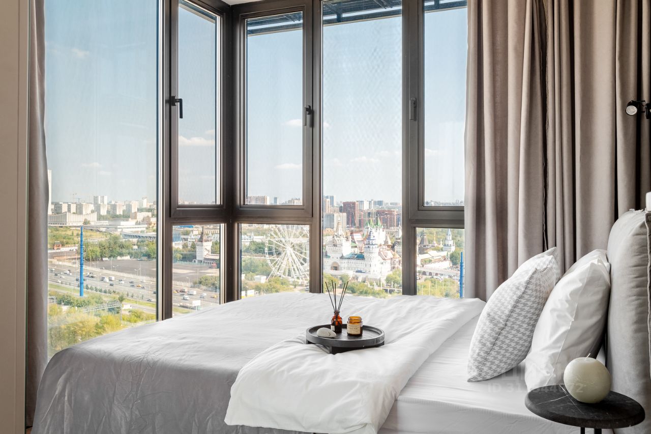 Окна выходят на Измайловский Кремль, реку и лес, с прекрасным закатом. Представь, с каким прекрасным настроением ты будешь просыпаться каждый день, лицезря эту красоту с высоты птичьего полёта! А вечером наслаждаться закатом, принимая ванну. Интерьер от дизайнера Олега Клодта.