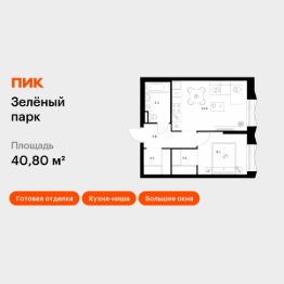 Продаётся 1-комн. квартира площадью 40,8 кв.м на 13 этаже 28 этажного дома (Корпус 6.6, Секция 5) проекта ПИК Зелёный парк. Светлый просторный подъезд на уровне земли, функциональная планировка, большие окна, c отделкой.