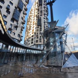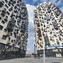 Комплекс апартаментов имеет закрытый двор с пропускной системой и двор без машин. В комплексе имеется подземный паркинг и стилобатная часть, где размещены и планируются новые торговые помещения. В стилобатную часть можно попасть из лифтов одного из корпусов комплекса, не выходя за пределы. Презентабельная входная группа с охранником-консьержем.