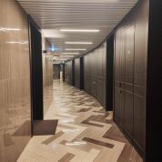 Комплекс апартаментов бизнес-класса имеет монолитную конструкцию. Места общего пользования отделаны керамогранитом. Высота потолков 3 метра. Благодаря высокому этажу в апартаментах хорошая степень инсоляции. Лифты фирмы ThyssenKrupp. Из окон открывается панорамный вид на город.