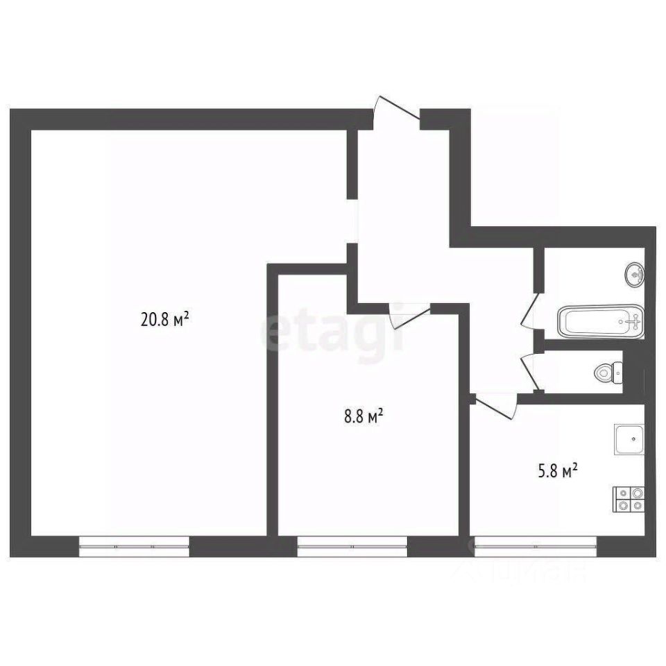 - Жилая площадь: 29,6 м² (20,8 м² и 8,8 м²).