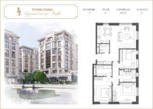 К продаже представлена светлая трехсторонняя квартира общей площадью 117,16 кв.м, расположенная на 6 этаже 3 корпуса, с просторной гостиной, объединенной с кухней. Панорамные окна в пол высотой почти 2,8 метра позволяют наслаждаться великолепными панорамами исторической Москвы и Пятницкой улицы. Окна спален выходят на тихую уютную внутреннюю территорию комплекса с садовыми и скульптурными группами.