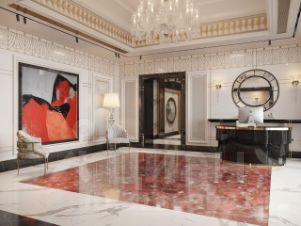 В квартире просторная гостиная с панорамными окнами в пол объединена с кухней-столовой. Хозяйская зона отделена от гостевой. Здесь предусмотрена одна детская спальня и гостевая спальня с выходом на террасу. Шикарная хозяйская спальня порадует вас большой гардеробной и ванной комнатой.