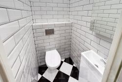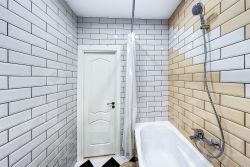 Стены кирпичные с финишным покрытием моющейся краской Dulux (никаких обоев), в санузлах и кухонной зоне итальянская плитка, дизайн metro