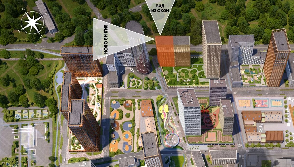 Восемь панорамных окон (включая лоджию и окно в ванной) выходящих на две стороны: во двор на северо-запад (обе спальни) и на город в сторону Звенигородского шоссе на северо-восток (мастер-спальня и кухня-гостиная). Благодаря высокому этажу из всех окон открываются прекрасные виды!