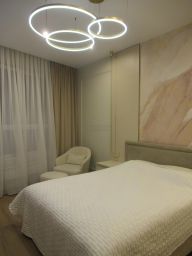 Квартира с дизайнерским ремонтом и функциональной планировкой: просторная кухня-гостиная, три изолированных спальни: одна с гардеробной комнатой, две со встроенными шкафами, два санузла, холл с с гардеробной комнатой, широкоформатные окна выходят на две стороны, высокие потолки. Квартира продается со встроенной кухней, встроенной техникой: варочная панель, духовой шкаф, посудомоечная машина, микроволновая печь, холодильник - Gorenje, и мебелью.