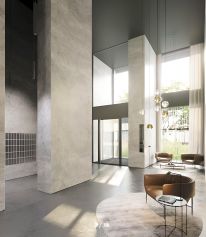 Закрытая территория жилого комплекса, продуманное благоустройство, эксплуатируемые кровли стилобата, образовательный центр с детским садом создают приватное пространство для тихой семейной жизни, а городская площадь с фонтанами, ресторан, супермаркет, коммерческая инфраструктура на первых этажах привносят созвучную с ритмом города динамику.