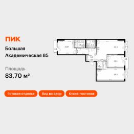 Продаётся 3-комн. квартира площадью 83,7 кв.м на 5 этаже 14 этажного дома (Корпус 3.2, Секция 3) проекта ПИК Большая Академическая 85. Светлый просторный подъезд на уровне земли, функциональная планировка, большие окна, c отделкой.