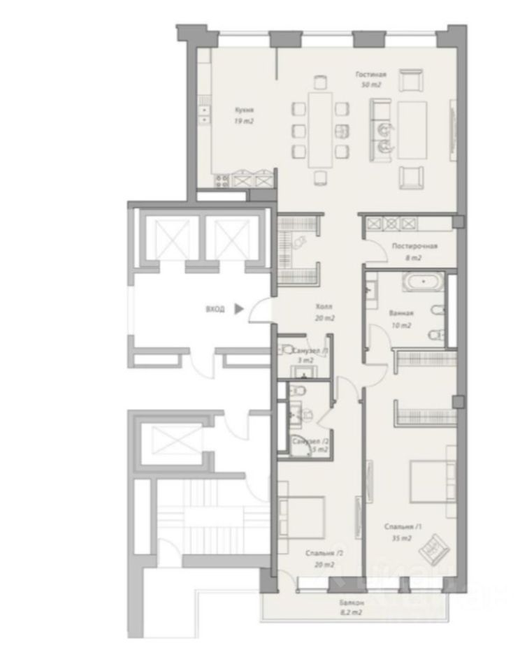 Квартира в бетоне, панорамные окна, приватный двор, консьерж-сервис 24/7, подземный паркинг, зоны отдыха для маленьких и взрослых резидентов комплекса