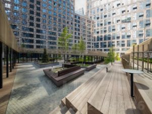 Высокое качество строительства, закрытая территория, красивый благоустроенный многоуровневый двор, подземный паркинг, фитнес, вкусные рестораны, кафе, все внутри двора.