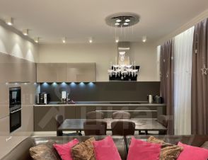 Евроремонт по дизайн-проекту с использованием дорогих и качественных отделочных материалов. Планировка кухня-гостиная, 3 спальни, гардеробная комната, хозяйственная комната (постирочная).