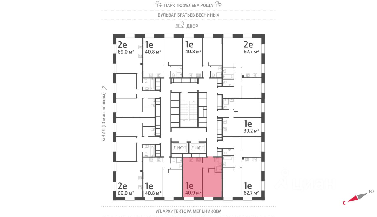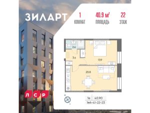 Продаётся 1-комнатная квартира в доме 18 (ЗИЛАРТ ГРАНД) ЖК "ЗИЛАРТ" общей площадью 40.9 кв. метров на 22 этаже.