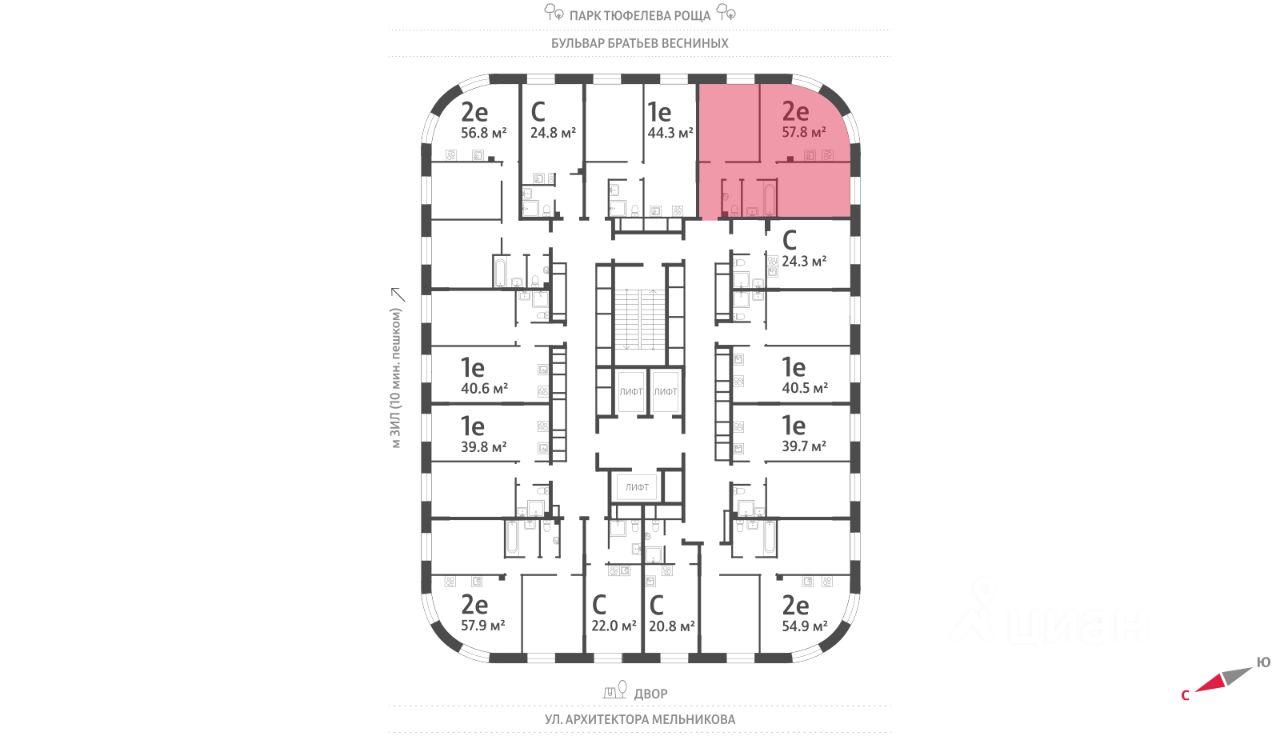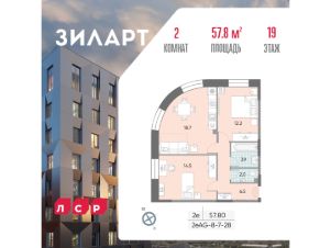 Продаётся 2-комнатная квартира в доме 18 (ЗИЛАРТ ГРАНД) ЖК "ЗИЛАРТ" общей площадью 57.8 кв. метров на 19 этаже.