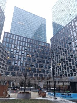 Скоростные лифты, Многоуровневый паркинг, двухуровневый внутренний двор, собственный торговый центр с ресторанами, кафе, магазинами. До станции метро Шелепиха 8 минут пешком.