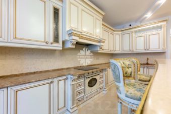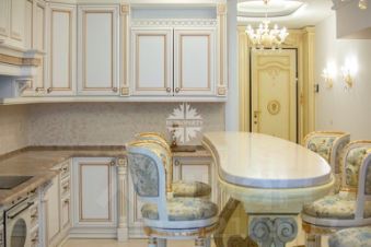 Для истинных ценителей классического искусства, представляем двухуровневый пентхаус с отделкой в классическом стиле с легким итальянским акцентом. Грамматика данного стиля ясная и понятная: большие светлые комнаты, мраморные полы, итальянские фарфоровые люстры, саксонские вазы, оригинальные кессонированные потолки, классические кресла и гобелены, изысканные аксессуары. Квартира спланирована в традициях дворцовой архитектуры: внизу большая столовая с панорамным окном и эффектом второго света , кухня с барной стойкой и премиальной бытовой техникой, действующий дровяной камин и библиотека. Наверху расположена приватная часть: 4 спальни, гардеробные, хозяйственные и ванные комнаты. На огромном пространстве квартиры дизайнерам удалось создать гармоничный классический интерьер, присущий русским аристократическим домам, в котором органично сочетаются элементы современного дизайна.