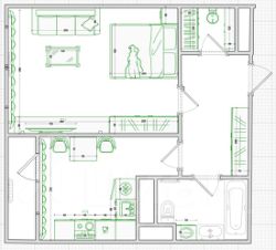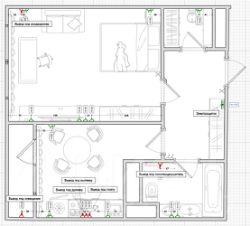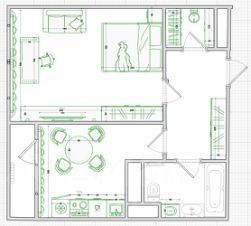 Предложено два варианта размещения мебели на кухне и в жилой комнате, выбирайте наиболее понравившийся и закупайте мебель по проекту.