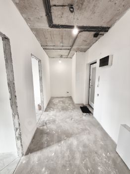 Выполнены штукатурные работы, проведена электрика и стяжка пола, установлена хорошая входная железная дверь с зеркалом, достаточно поклеить обои, завершить чистовые работы, поставить мебель и можно заселяться.