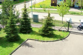 2 этаж: холл, мастер спальня с выходом на балкон, гардеробной и ванной комнатой, спальня, кабинет с выходом на балкон, санузел. На участке высажен газон и ели.
