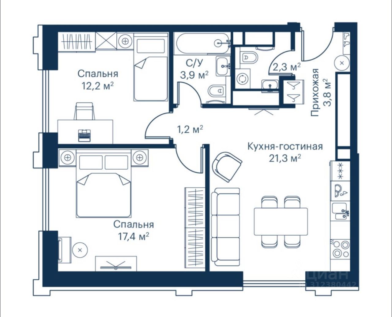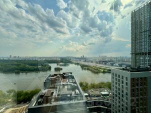 Удобная планировка, общая площадь 61,4 м2, просторная кухня-гостиная 21м2 из который открывается живописный вид на р. Москва и Спасский затон с островами, просторные спальни: 17м2 и 12 м, два с/у. Отделка от застройка White box.