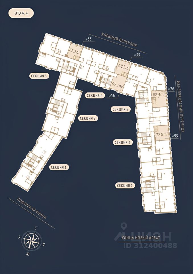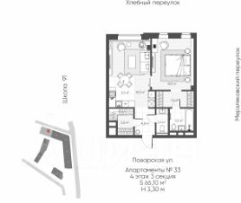 В продаже от собственника YUNIKA апартамент свободной планировки общей площадью 66,1 кв.м.
