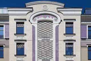 - отделка фасадов и МОП натуральными дорогостоящими материалами в стиле Русский модерн.