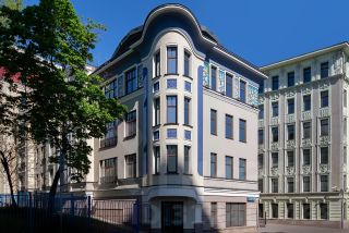 Дом на Поварской - гармоничное единство классики и модерна, воплощенное в бережной реставрации главного фасада XIX века и декоративных цветочных панно, созданных архитектором Павлом Андреевым. Из окон открывается прекрасный вид на зелёный сквер Мерзляковского переулка и Поварскую улицу, где преобладает малоэтажная застройка. Вид на Новый Арбат венчает жемчужина русской православной архитектуры XVII в. - пятиглавая церковь Симеона Столпника.