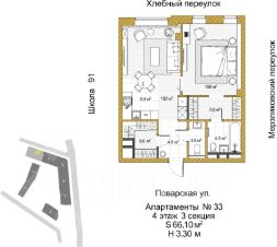 В продаже от собственника YUNIKA апартамент свободной планировки общей площадью от 66,1 кв.м. с предчистовой отделкой.